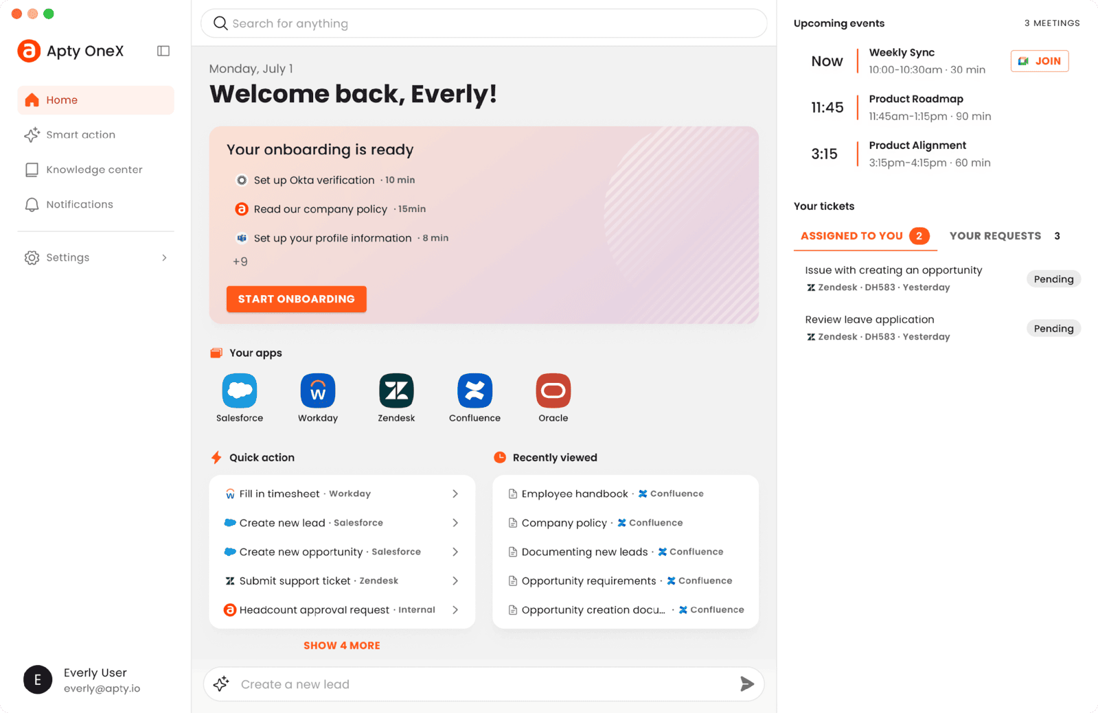 Apty OneX: A unified Digital Adoption Platform powered by GenAI that enables users to interact and transact across various enterprise applications from a single interface. This revolutionary approach features conversational UI for executing day-to-day tasks and AI that helps auto-fill forms without switching applications.
