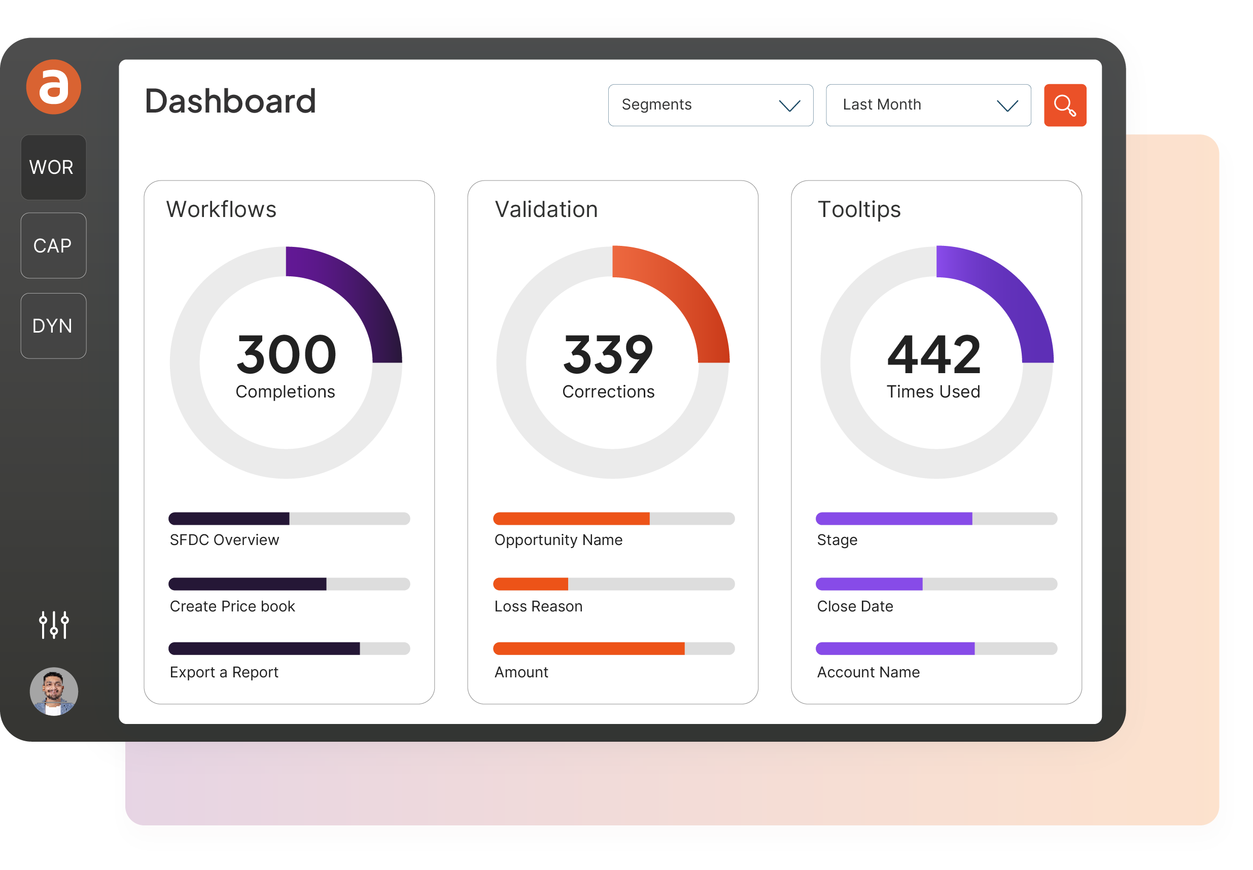 AI excels at identifying inefficiencies in how employees interact with software. By analyzing user journeys across applications, AI-powered adoption platforms can: