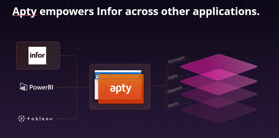 - Real-time assistance: As users interact with Infor, Apty provides step-by-step assistance, making complex workflows easier to navigate.