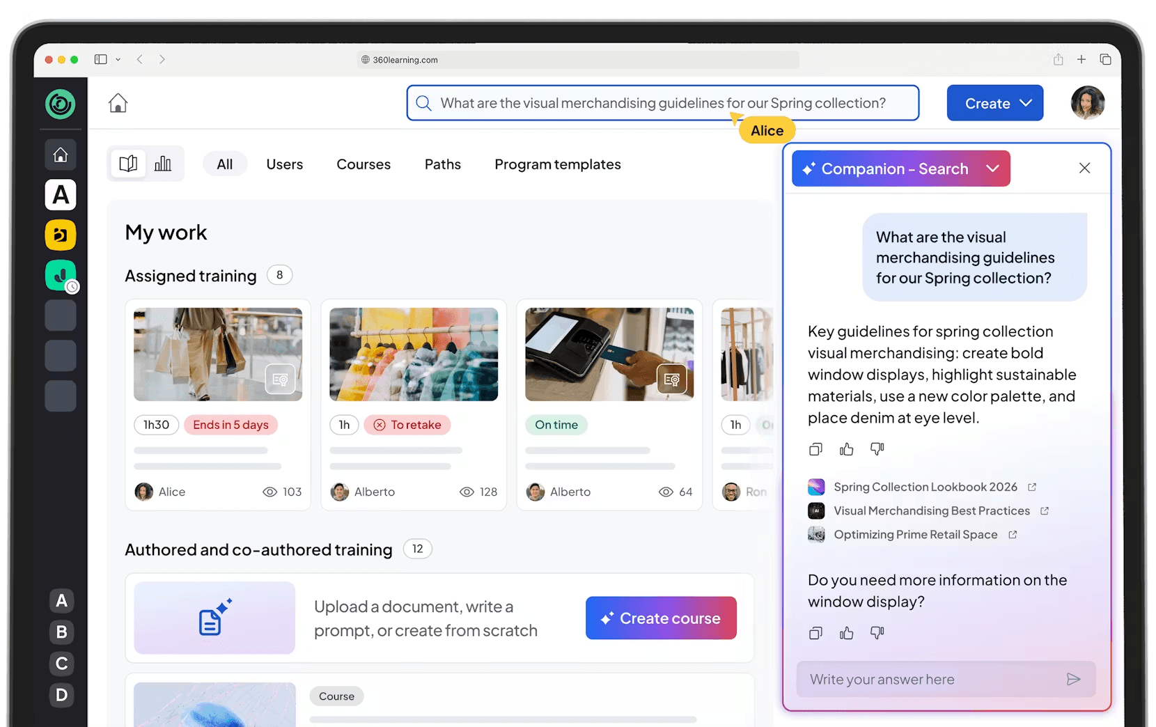 Using AI-assisted authoring, subject-matter experts can convert documents, videos, or presentations into structured training modules in minutes. And learning stays current because content owners update it directly as processes evolve.