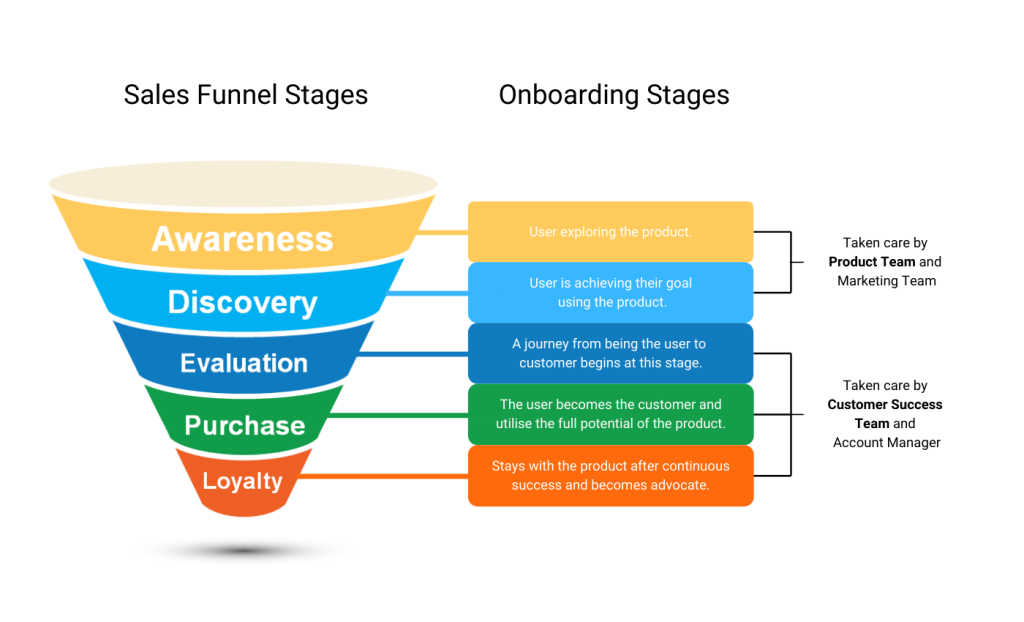 When a person transcends from the Evaluation stage to the purchase stage, the responsibility of Customer Onboarding moves to the customer success team and the Account Managers.