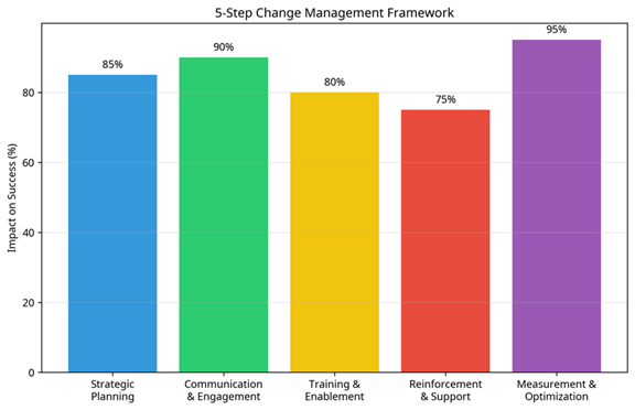 - Measurement & Optimization: Tracking adoption metrics and business outcomes to continuously improve the change approach.