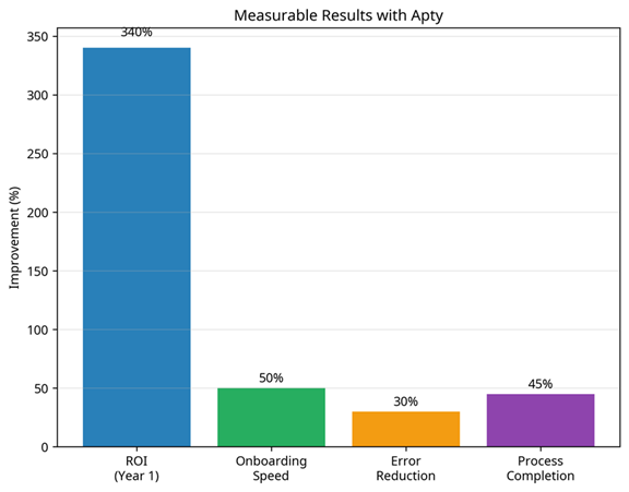 - Focus on Business Outcomes: Apty moves beyond adoption metrics to measure what actually matters—errors avoided, processes completed, and business performance accelerated.