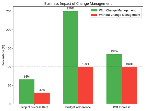 Research consistently demonstrates the dramatic difference in outcomes between organizations that employ effective change management and those that don’t: