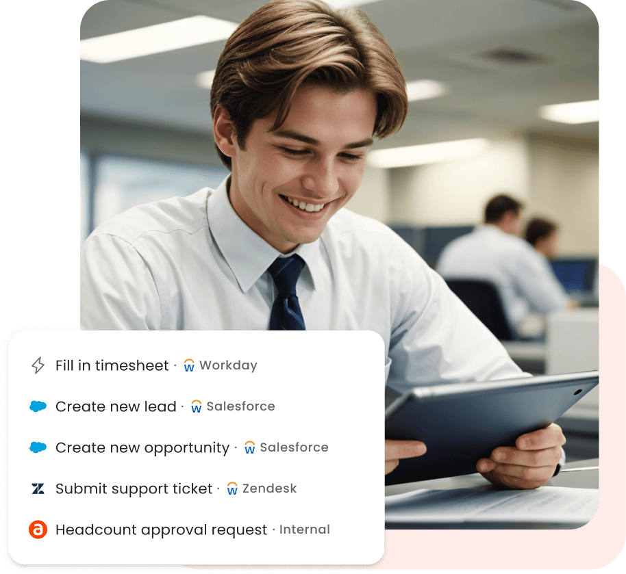 Leverage AI-driven workflows and automation features to remove manual dependency on mundane business processes. Our digital adoption platform streamlines productivity on custom applications – even across critical business functions.